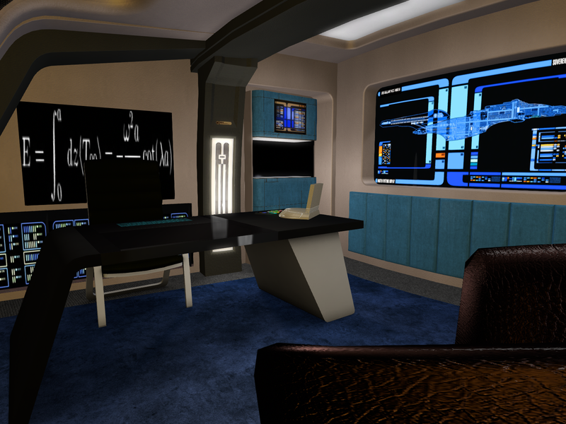 Similar to the Chief Medical Officer's office, the Chief Engineer's office is located inside of their area of operation. This allows for quick access to the rest of main engineering in the event of an emergency, as well as fluid interaction with all engineering personnel and specialists who are currently on duty.