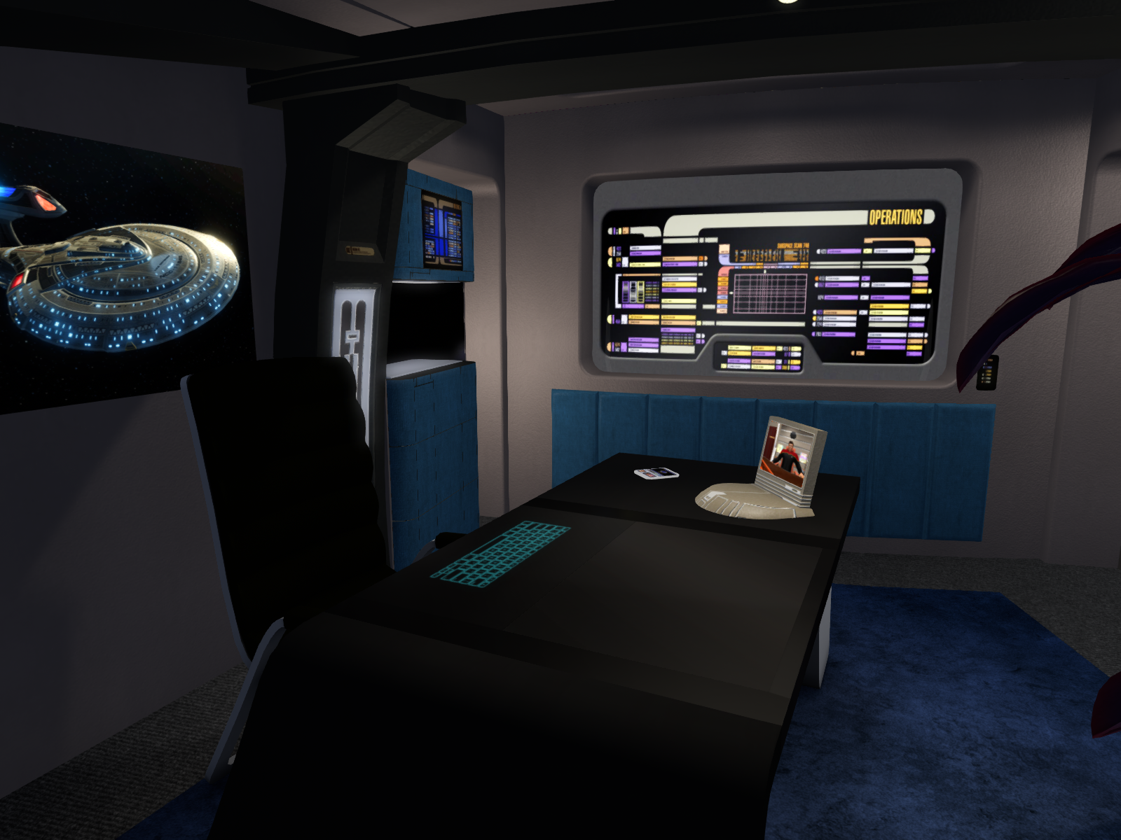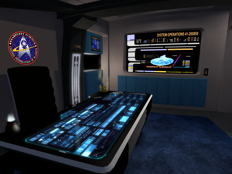 These room is located on main section near each department and is a personal office reserved for the ship's Chief Officer. The room is well-equipped with several large LCARS displays which allow the Officer to supervise ship-wide security, research and development, as well as providing access to all records and databases.